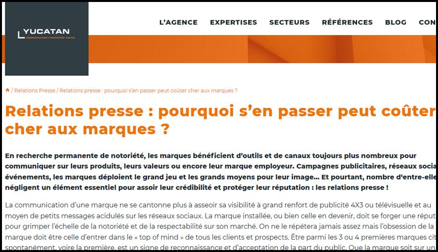 Retrouvez ma contribution sur le blog de YUCATAN Media & PR sur le thème des relations presse. En savoir plus...