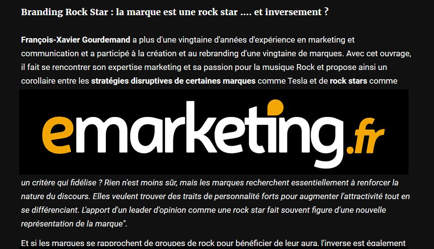 "Branding Rock Star" est sélectionné par le blog new pub marketing dans sa rubrique livre avec "les 5 livres marketing 2020 qu'il faut lire". En savoir plus...